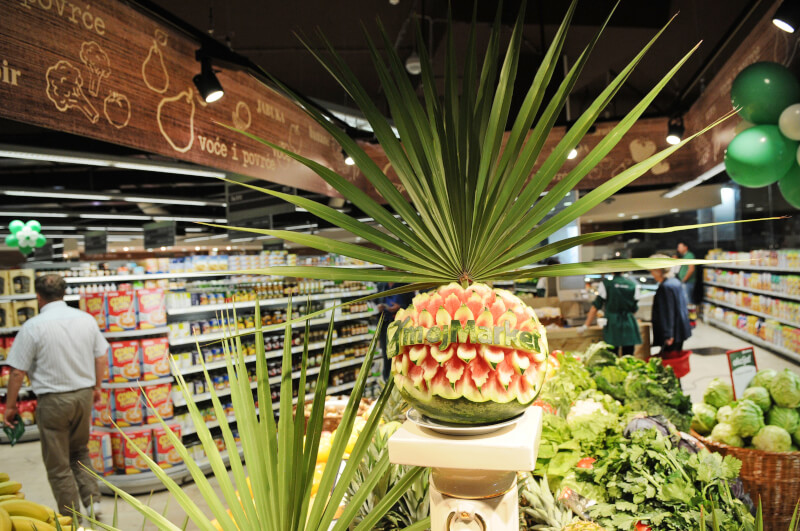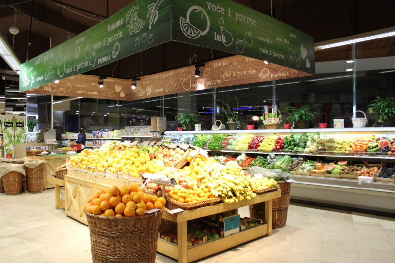 Jedan od glavnih pokretača našeg razvoja, predstavlja mlada i motivisana radna snaga, koja konstantno osmišljava i realizuje različite aktivnosti, sa ciljem pružanja što bolje usluge našim komšijama. Naročita pažnja usmjerena je na kvalitet svježeg mesa, voća i povrća, a posebnu podršku pružamo domaćim proizvođačima. Slatkovodna riba dolazi iz domaćih ribnjaka, a kada to sezona dopušta, voće i povrće otkupljujemo lokalno.